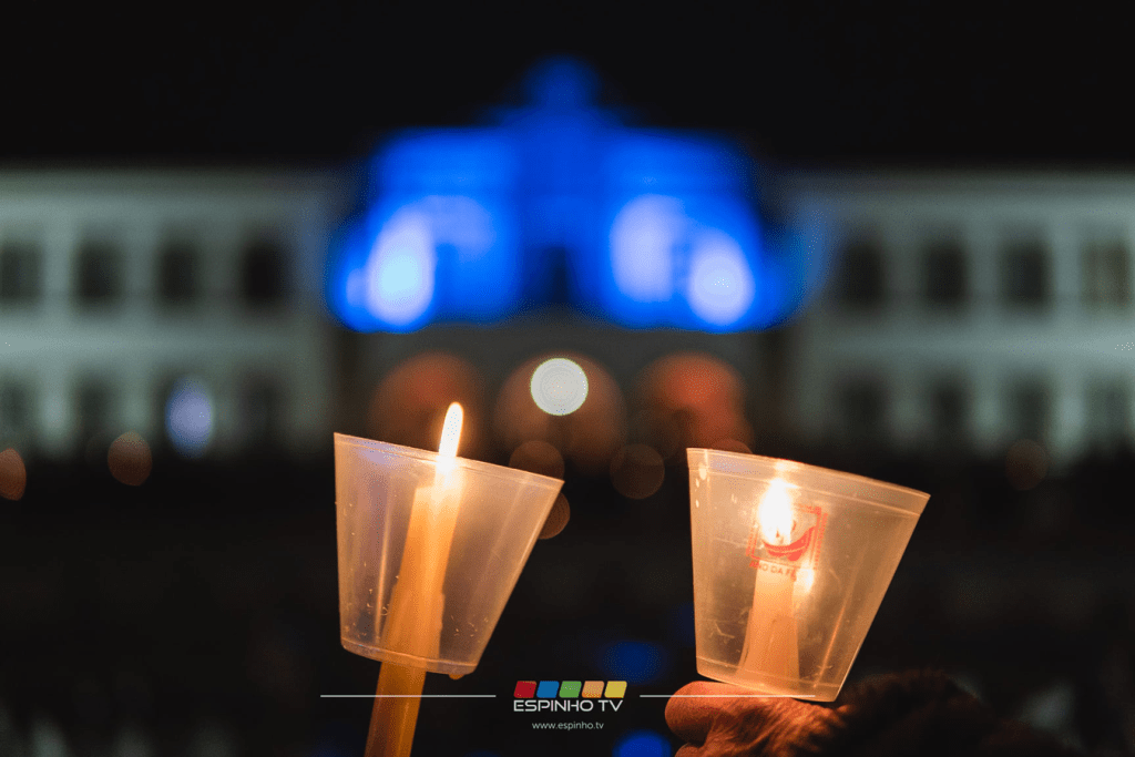 A convite do Sr Padre Artur, para crentes e não crentes, em frente à Câmara reunimo-nos com a flor e de vela na mão. Luz, flores encheram o recinto… De certeza que naquela hora eram todos crentes no mesmo sentir: “NÃO À GUERRA”! Todos estamos com aquele povo sofredor que chora, grita, perde tudo. E partem sem saberem para onde, sem nada, principalmente mulheres, mães, com um pequeno saco e os filhos à procura de paz, se é que mesmo estando a salvo conseguirão VIVER… Quisemos assim juntarmo-nos àqueles jovens que animaram aquele momento de oração e recolhimento. O testemunho de Alyona Smertina…Todos nos sentimos Ucranianos, na continuação daquele grito espontâneo VIVA A UCRÂNIA. Repetimos hoje e sempre enquanto não houver PAZ…