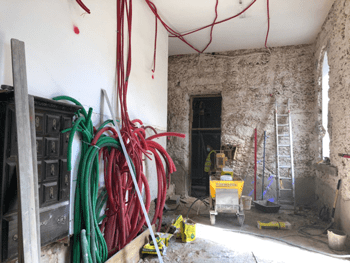Claro que antes da regularização das paredes, entraram em obra as especialidades de pichelaria e eletricidade, colocando as tubagens necessárias nas paredes.