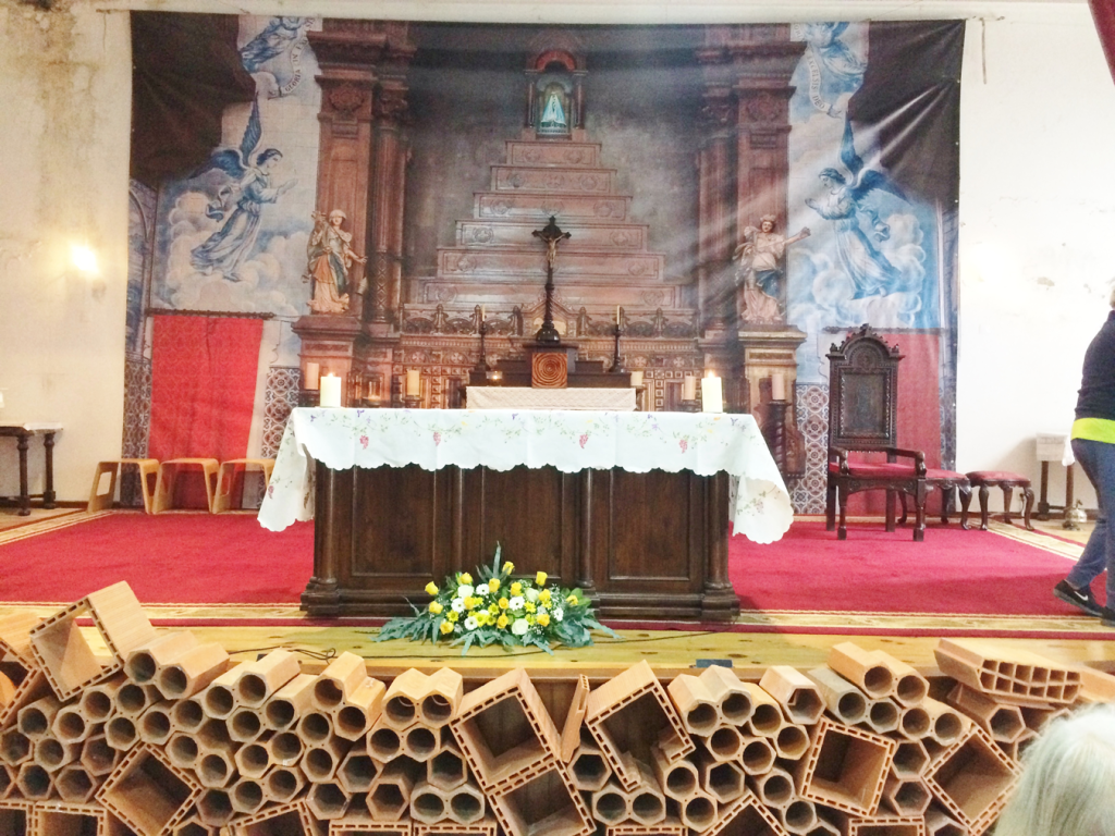 Agora que as obras se vão estender para a nave, precisamos de outros espaços para a celebração da Eucaristia. Na nave da Igreja teremos que cuidar da abóbada e de todas as fissuras, também vamos cuidar de isolar o piso para receber um novo soalho. Todas as paredes que se encontram danificadas pelas infiltrações, serão tratadas com a reposição de rebocos novos. Tudo isto exige a montagem de andaimes por toda a Igreja e que impossibilita a celebração da Eucaristia.