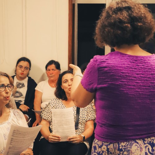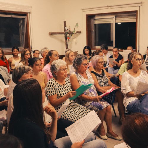 Os grupos corais foram criados em momentos diversos, permitindo gradual e sustentadamente a compreensão do significado de louvar a Deus, cantando e refletindo sobre os diferentes textos, conscientes de que a força de cada palavra e de cada nota musical exigem uma aprendizagem contínua.Agora ensaiamos todos juntos e somos um só grupo que se divide pelas diferentes eucaristias.