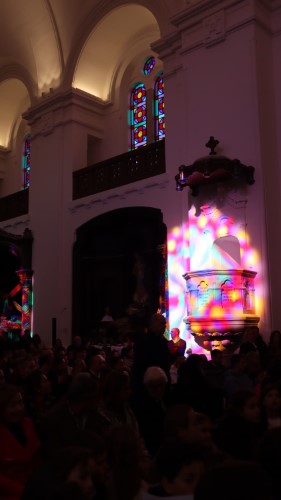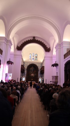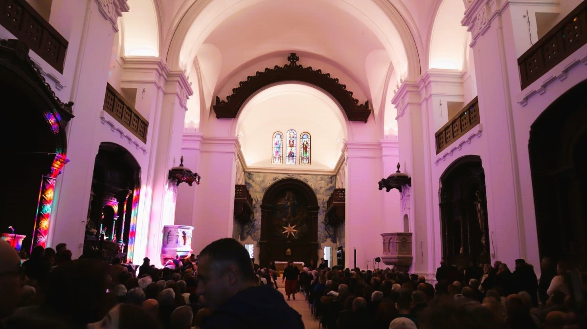 Apesar de uma pequena claridade se ter instalado e o céu estar maioritariamente limpo, o interior da igreja irradiava um acolhimento ardoroso. Mesmo não estando concluídas, as obras instalaram a sua imponência original, com um toque de modernidade que respeita sua história.