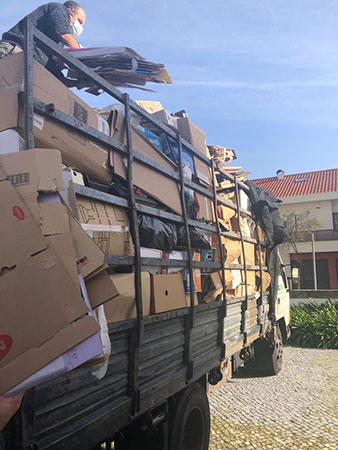 Assim, no passado sábado, dia 28, a comunidade uniu-se em torno desta nobre causa. Ao longo de toda a manhã, os paroquianos fizeram chegar todo o papel e cartão que foram acumulando, tendo este sido suficiente para encher um camião completo! Foi, naturalmente, muito reconfortante ver a comunidade unida durante cinco esforçadas horas em torno desta sua missão, salvando o ambiente neste nosso pequeno raio de ação, desta vez ainda mais limitado pelo confinamento que tem distinguido o longo ano que vivemos, mas causando um enorme impacto em vidas insuspeitas a milhares de quilómetros de distância.